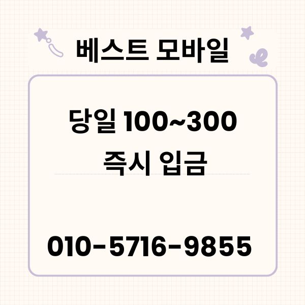 - 신속하고 정직한 절차로 당일 100-300